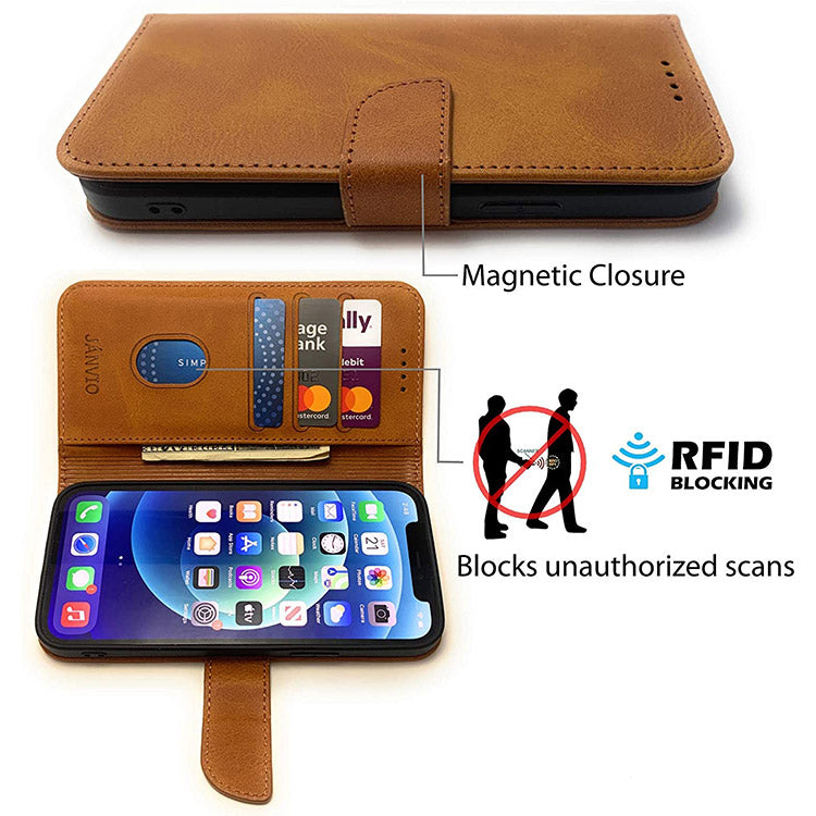 - RFID Blocking & Phone Protection: RFID blocking material offers protection against hackers & scammers. The full-body, dual-layer flip cover helps protect against drops, scratches, and dings.